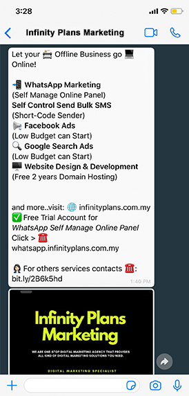 In the world of digital communications, businesses should adopt the latest communication mediums to reach our potential and existing buyers. Along with emails and text messages, businesses should use Whatsapp for communicating with clients or customers. Infinity Plans Marketing is a leading Mobile WA marketing service in Singapore. We have a team of proficient individuals who have years of experience rendering top-quality digital marketing solutions to clients.